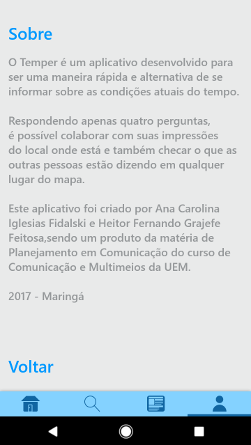 Temper is an alternative idea to weather forecast consumption, where participation between users would be the main key to weather information: each local contribution results in information for other users who intend to go to a certain region.